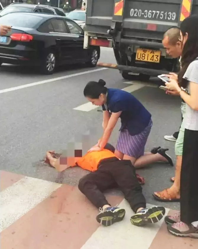 她们跪地救人。