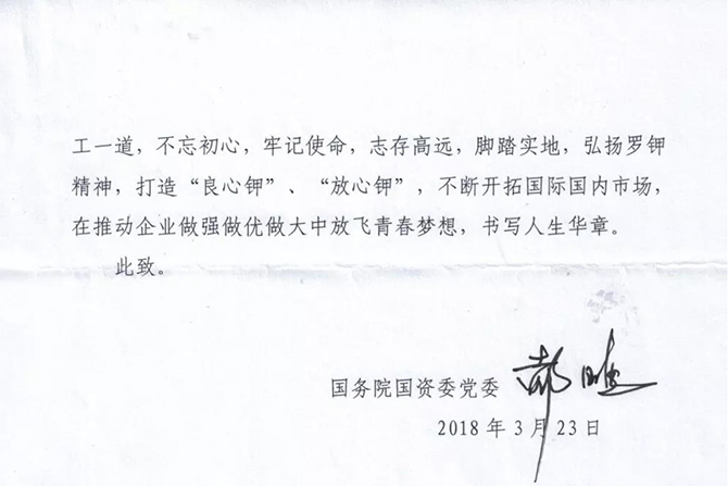 郝鹏书记对央企青年员工提出了殷切希望:希望罗钾人和广大国有企业职工一道,不忘初心,牢记使命,弘扬罗钾精神,打造“良心钾”、“放心钾”,不断开拓国际国内市场,