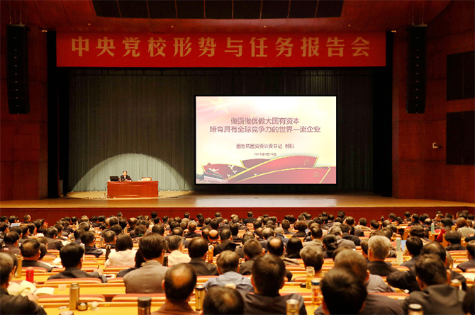 4月19日,国资委党委书记郝鹏应邀在中央党校“形势与任务”报告会上作专题报告,围绕学习贯彻习近平新时代中国特色社会主义思想和党的十九大精神,以贯彻落实习近平总书记关于国资国企改革发展和党的建设重要论述为主题主线,用详实数据和生动案例,重点从国有企业地位作用、国有企业发展、国资国企改革、国有企业党的领导党的建设等方面,系统阐述了国资委和中央企业树牢“四个意识”、增强“四个自信”、坚决做到“两个维护”,做强做优做大国有资本、培育具有全球竞争力的世界一流企业的实践与成效。中央党校(国家行政学院)副校长(副院长)李季主持报告会。