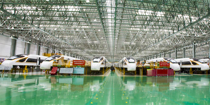 ▲中车长客“复兴号”中国标准动车组装配现场