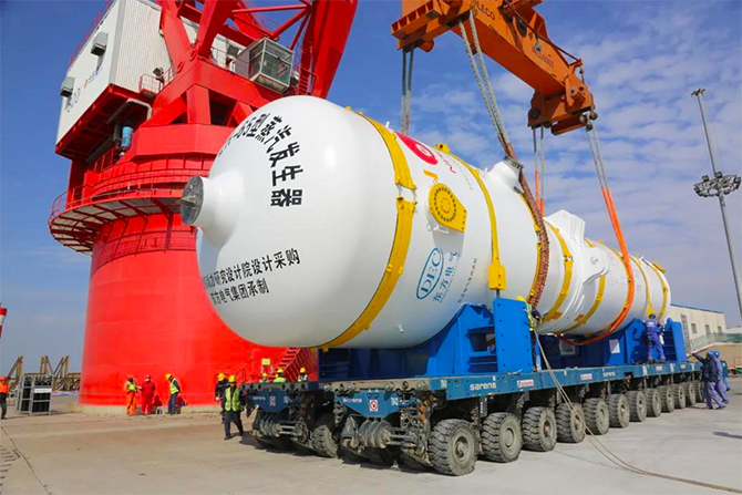 ▲由东方电气承制的“华龙一号”全球首堆蒸汽发生器
