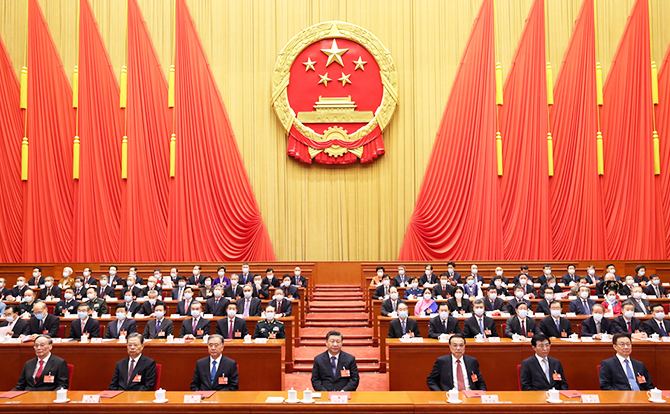 习近平、李克强、汪洋、王沪宁、赵乐际、韩正、王岐山和大会主席团成员在主席台就座。