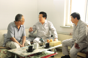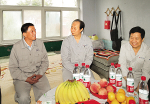 公司副总经理、总会计师于万源来到鞍钢钢绳公司拉丝车间维修工赵家增、鞍钢矿业公司托管中心长病列编外人员魏卿家中。在赵家增家中,于万源与赵家增促膝交谈起来。针对赵家增提出的成立专门研发高端产品队伍的建议,于万源说,品种质量是企业生命,在应对市场挑战中,应发挥企业的优势,扬长避短。“房子是哪一年入住的”、“冬天取暖怎么样”……一走进魏卿家中,于万源就与魏卿聊起家常。于万源说,这次来就是要听取职工群众对集团公司发展的意见,了解你们生活中遇到的困难。于万源坐在魏卿身旁听他讲述自己患病经历,对他提出的相关问题,根据政策给予了耐心详细的解答,并鼓励魏卿要积极锻炼身体,保持良好心态。