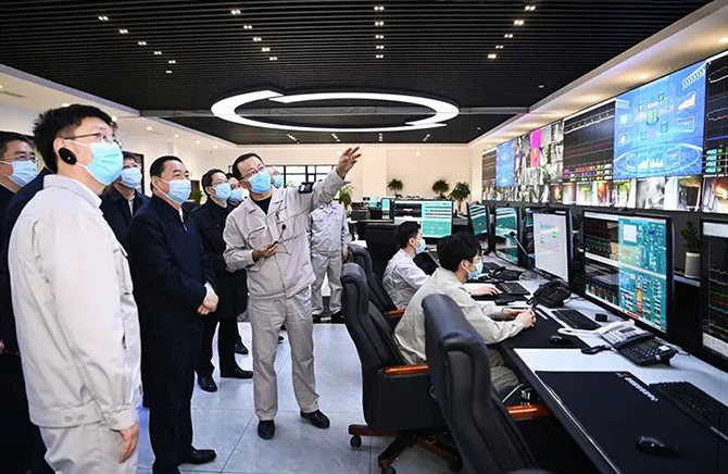 3月24日、25日,辽宁省委书记、省人大常委会主任郝鹏到鞍钢股份炼铁总厂智慧炼铁中心调研。