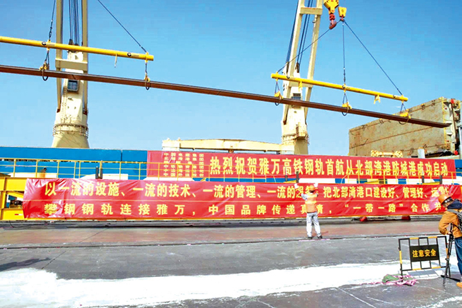 “此次雅万高铁钢轨的出口是我国首次出口长定尺钢轨,创造了特长钢轨装船出海的历史。”至今,提起几年前的出口仪式,鞍钢国贸攀枝花进出口部门负责人依然感慨万千,“为加快装船效率,我们与防城港码头公司等单位组建专业团队进行技术攻关,制订多个海运、陆运和装卸方案,配合相关单位,对防城港港口基础设施进行升级改造,解决了长定尺钢轨港口场地施工改造、港口吊装设备的设计、施工、倒运等多项难题,突破了国内长定尺钢轨出口海外安全运输的‘瓶颈’。”