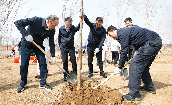挥锹铲土、培土围堰、提水浇灌、支护树苗……在植树点,谭成旭、李镇一同接连种下20余棵九角枫,并与集团总部复垦绿化志愿者协作配合,为周围新栽种的树苗补土。谭成旭、李镇等集团领导一边夯实土壤一边向相关工作人员询问树苗成活等情况,并叮嘱道:“增绿就是增优势,植树就是植未来。要深刻学习领悟习近平总书记在参加首都义务植树活动时的重要讲话精神,坚持科学推进国土绿化,适地适树、适时适法,做到种一棵活一棵、造一片成一片。”“要坚持少花钱、多办事、办成事的原则,确保绿色发展取得丰硕成果,实现生态效益、经济效益、社会效益相统一。”“要坚持统筹谋划,在做好矿山复垦绿化工作的同时,充分发挥鞍钢矿业公司种植方法科学和经验丰富等优势,进一步做好特色树苗培育工作,为集团其他子企业扩绿兴绿、美化厂区环境提供有力支撑。”